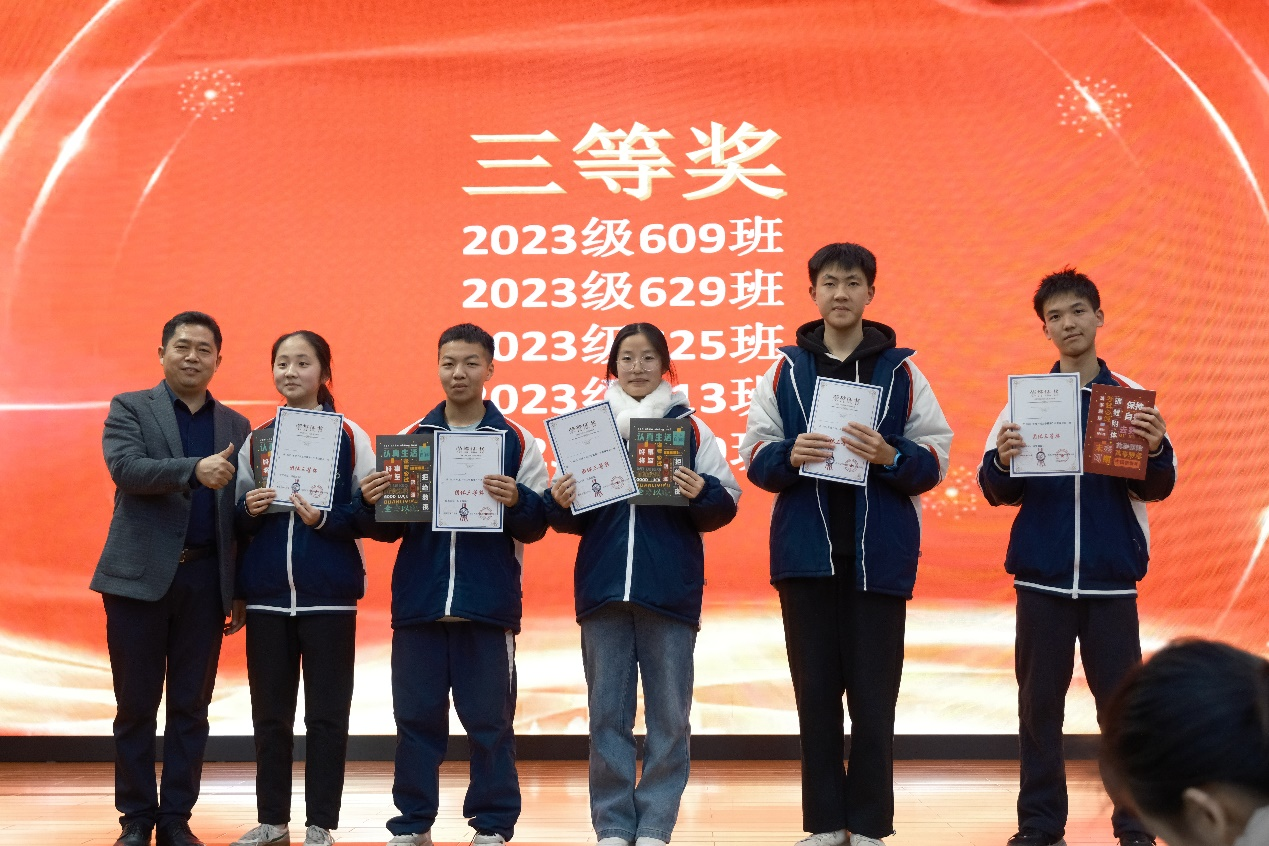 经过后台数据分析和教师们的仔细审核,奖项最终揭晓:个人赛共产生特等奖获得者6名,一等奖获得者10名,二等奖获得者15名,以及三等奖获得者23名。在团体赛方面,高二617,622,626三个班级荣获一等奖,620,627,616,628四个班级班荣获二等奖,609,629,625,613,619五个班级荣获三等奖。