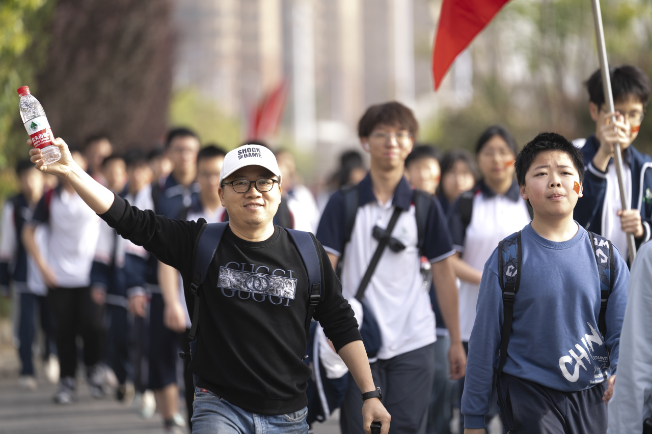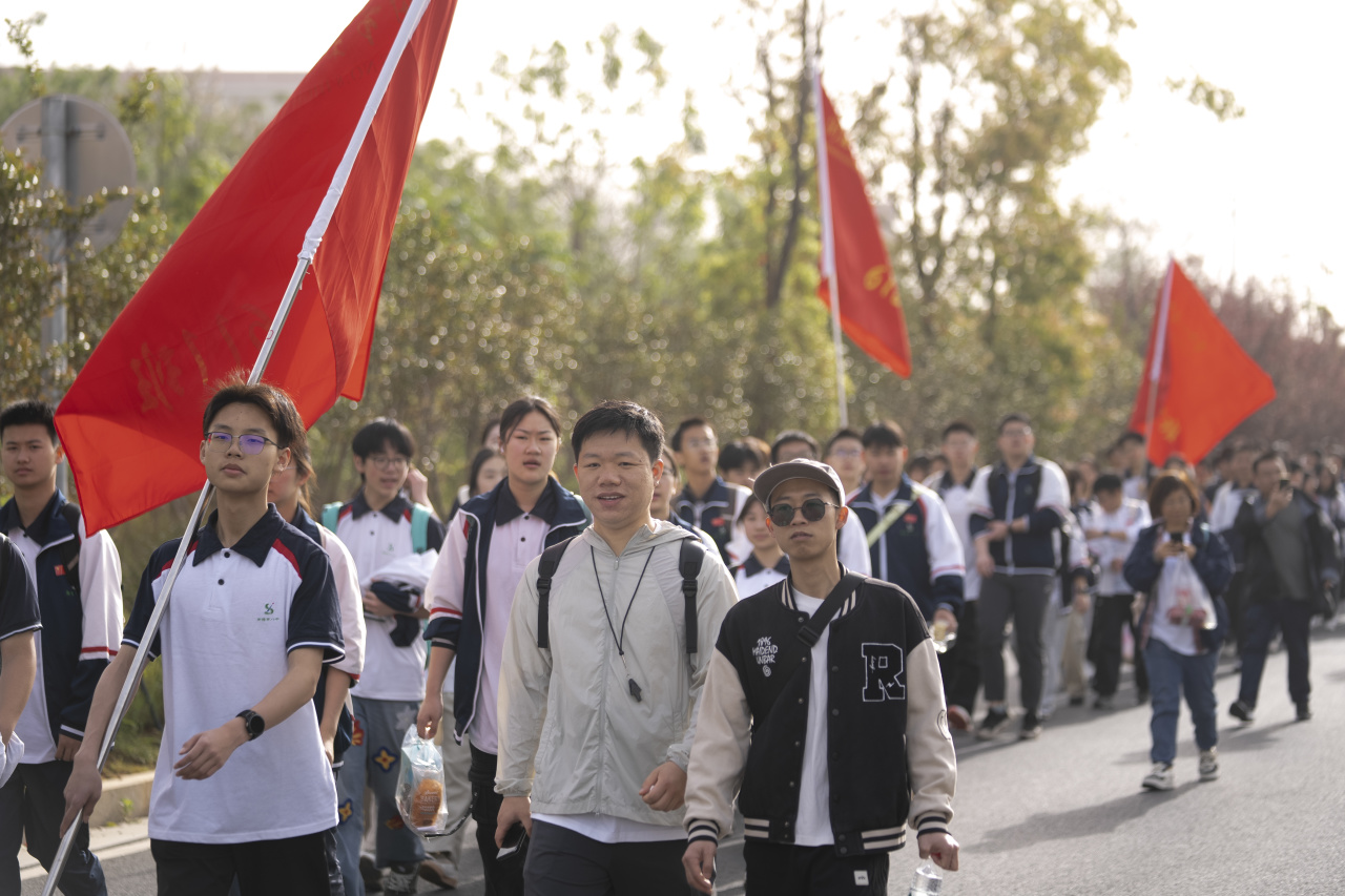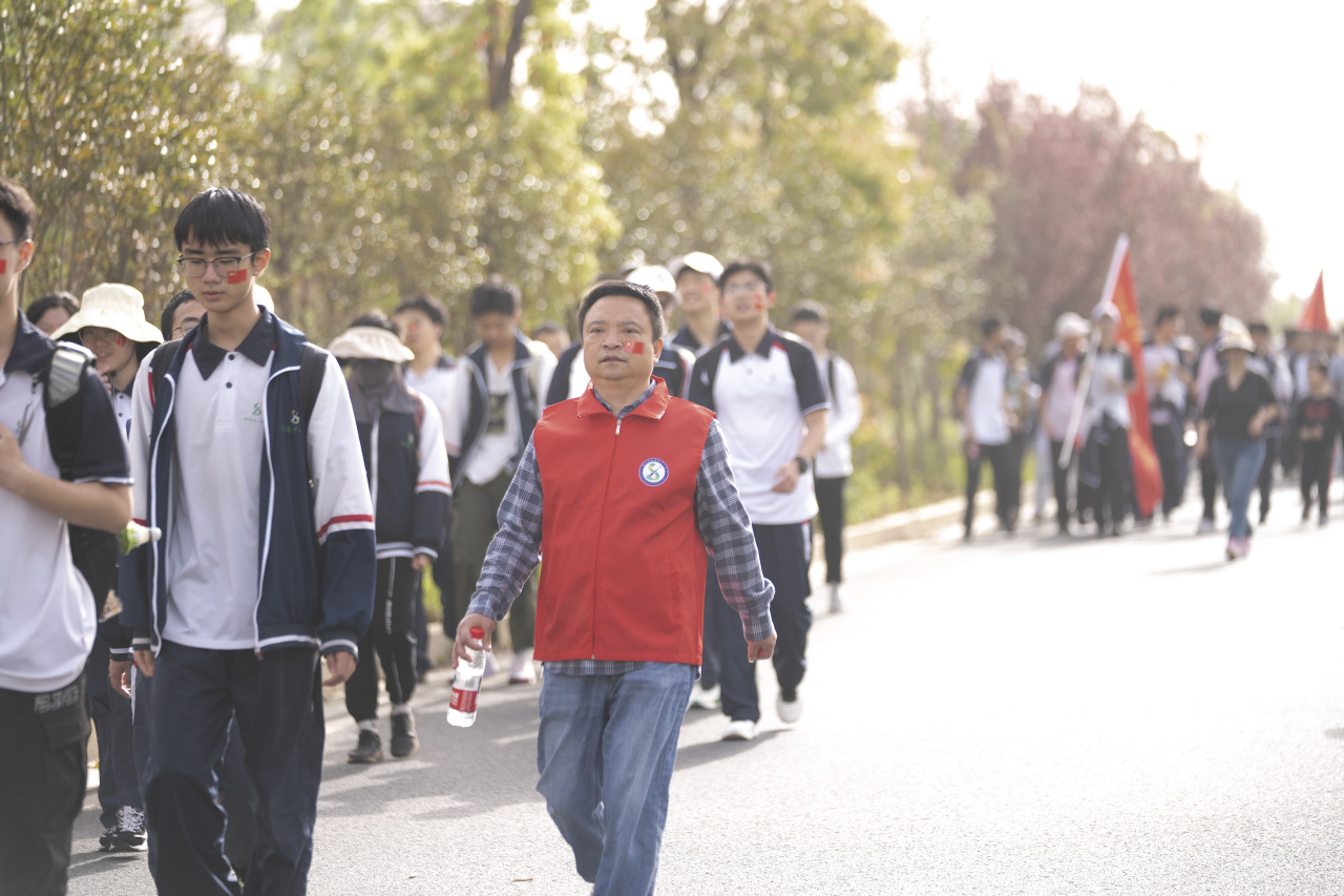 这 20 公里,不只是地理距离上的跨越,更是学生们成长能量的有力蓄积。一路上,党员教师们组成“红旗护导队”,始终走在队伍外侧,用自己的身躯为大家筑起一道坚固的安全屏障;家长志愿者们则在各个关键地点,贴心设立了“能量加油站”;学生们也自发成立了“互助联盟”,尽显温暖与担当。有的同学拿出创可贴,细心为脚踝受伤的同伴处理伤口;有的同学主动扛起三只背包,咬牙坚持到最后两公里。