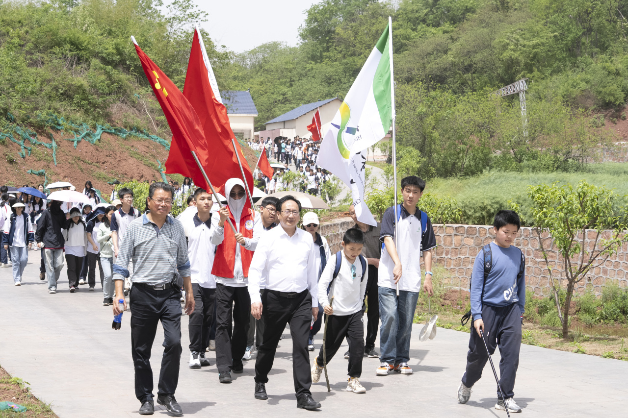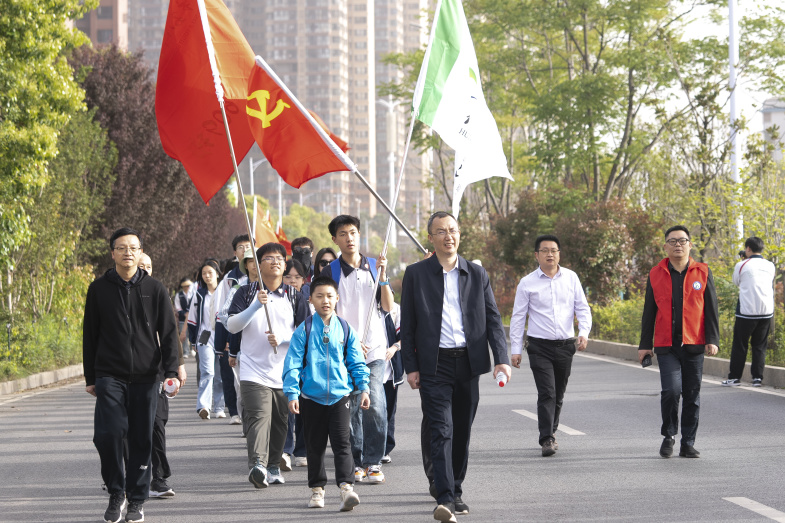 春山可望,步履铿锵。4月13日,衡阳市第八中学组织高二年级千余名师生开展“循湖湘文脉·励青春之行”20公里徒步活动。党委书记宁中平,党委副书记、校长唐志军带队,将思政课堂从教室延伸至红色教育基地,以徒步丈量青春信仰,用实践淬炼奋斗品格。活动全程贯穿红色教育、团队协作与意志磨砺,成为一堂“行走的思政大课”。
