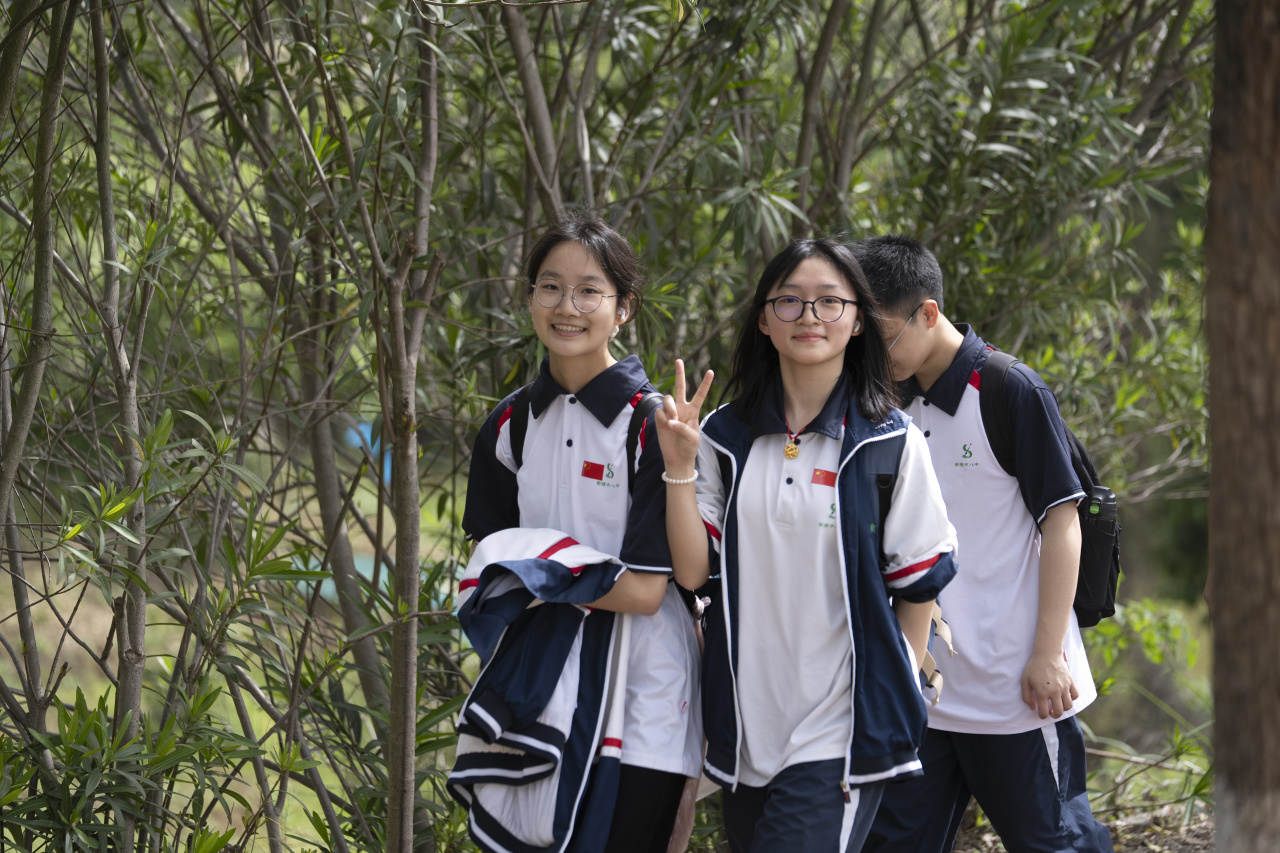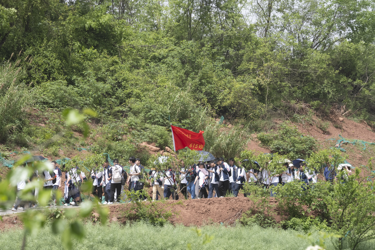 家校同行的队伍中,一个健壮的身影格外引人注目。620班吴文力的父亲——一位驻云南某部的现役军人,专程跨越千里奔赴活动现场。这位军人全程与师生并肩前行,"军人家庭的红色血脉要和学校的思政教育同频共振。"途中休息时,他轻抚儿子被汗水浸透的校服说道:"这次徒步就像军事拉练,孩子们在传承湖湘精神中锤炼意志,这才是最生动的国防教育课。"