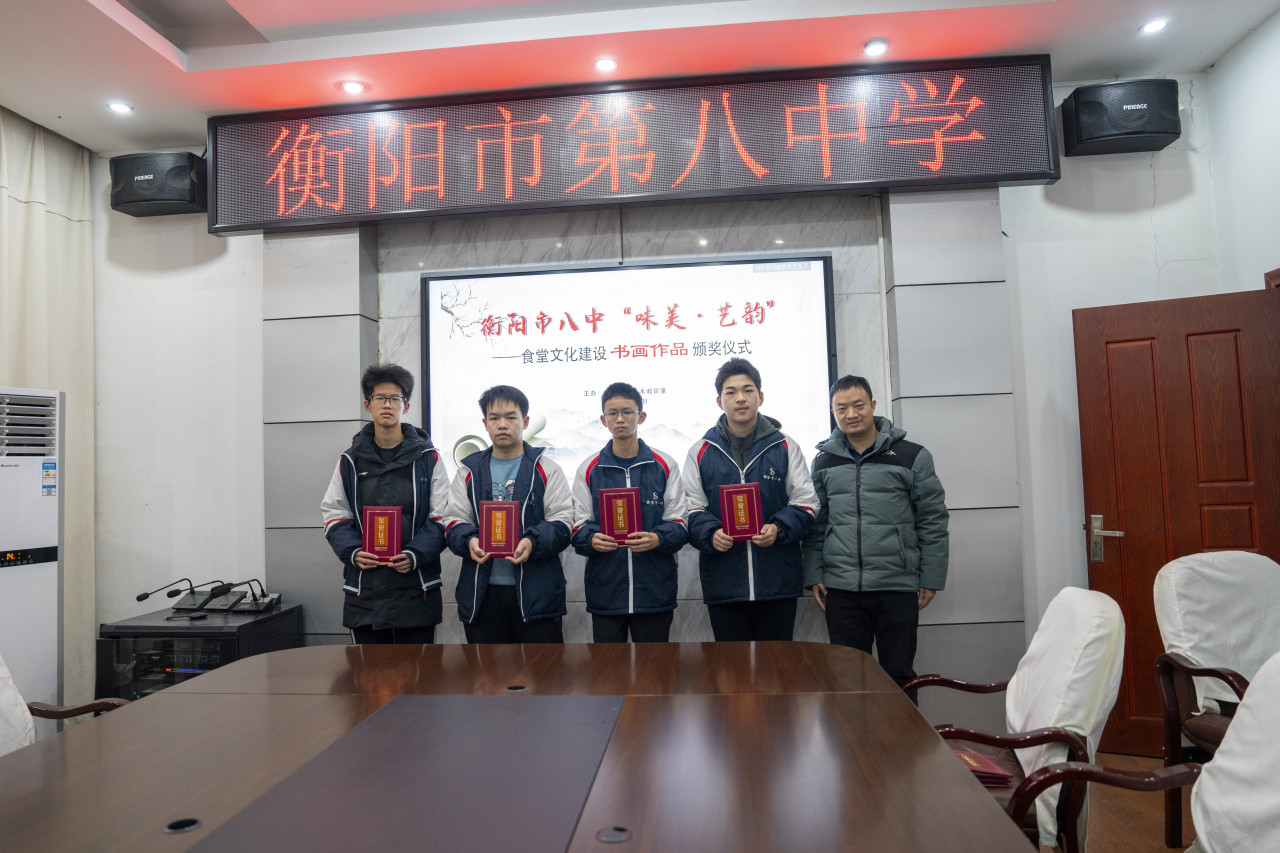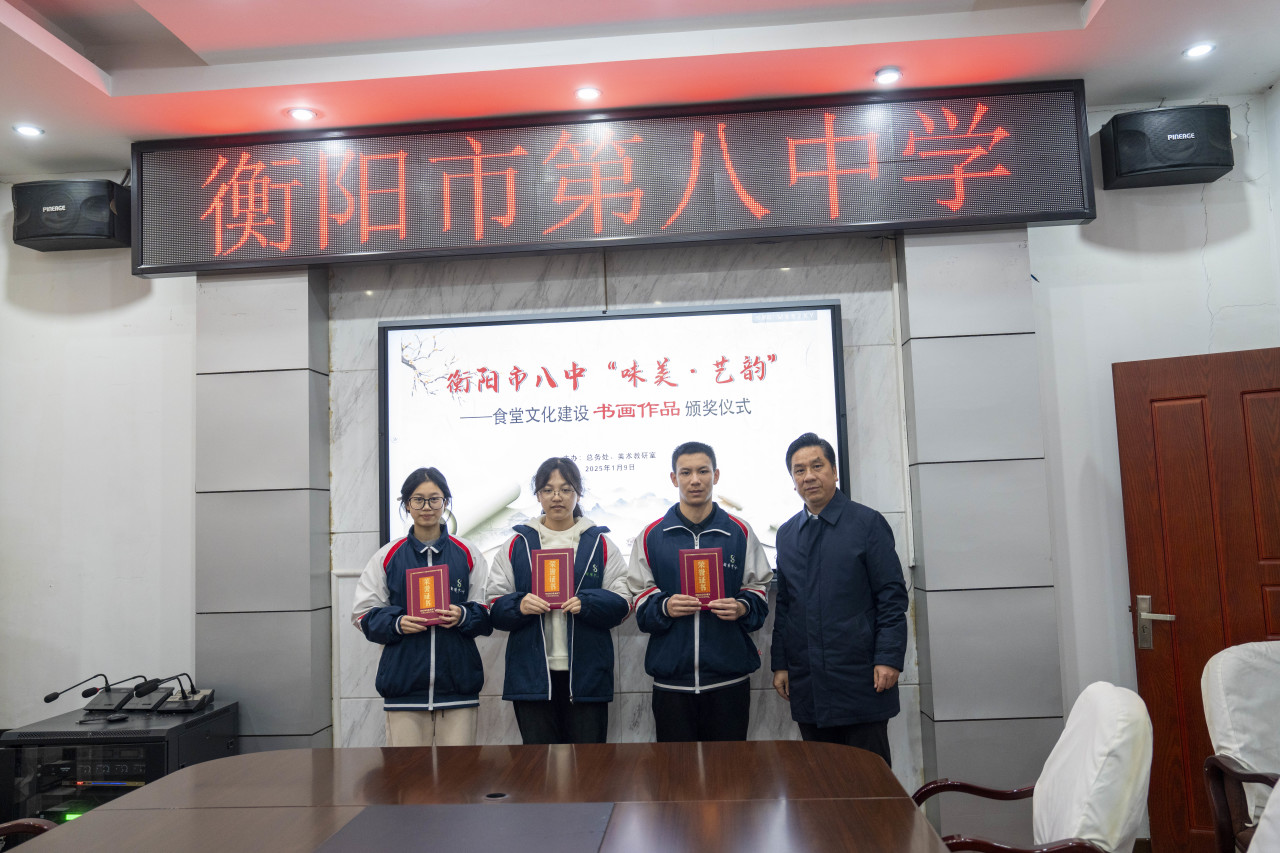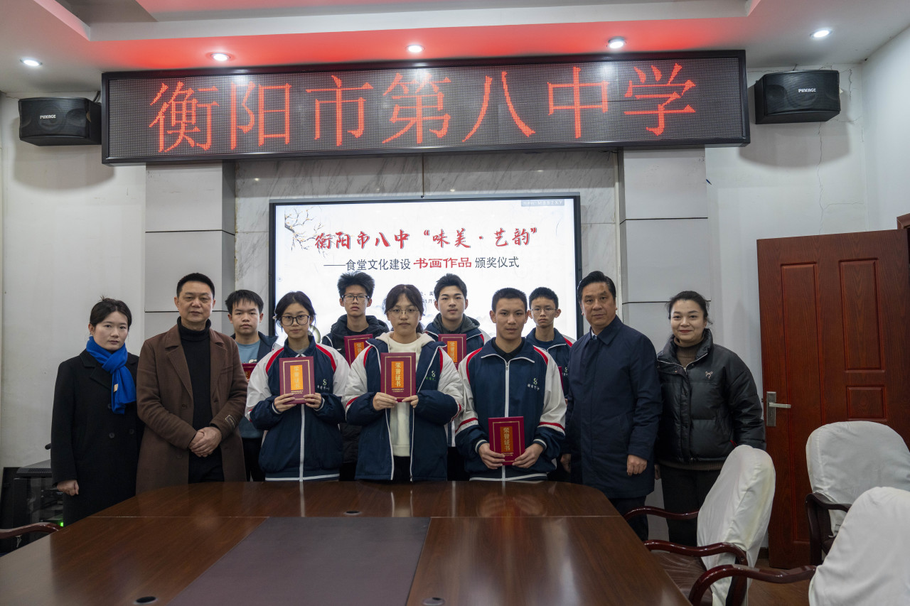 活动面向全校学生公开征集优秀书画作品,得到了广大学生的积极响应和热情参与。经过严格评选,一批富有创意和艺术感染力的作品脱颖而出。1月9日,衡阳市八中在校内举行了“味美·艺韵”食堂文化建设书画作品颁奖仪式。