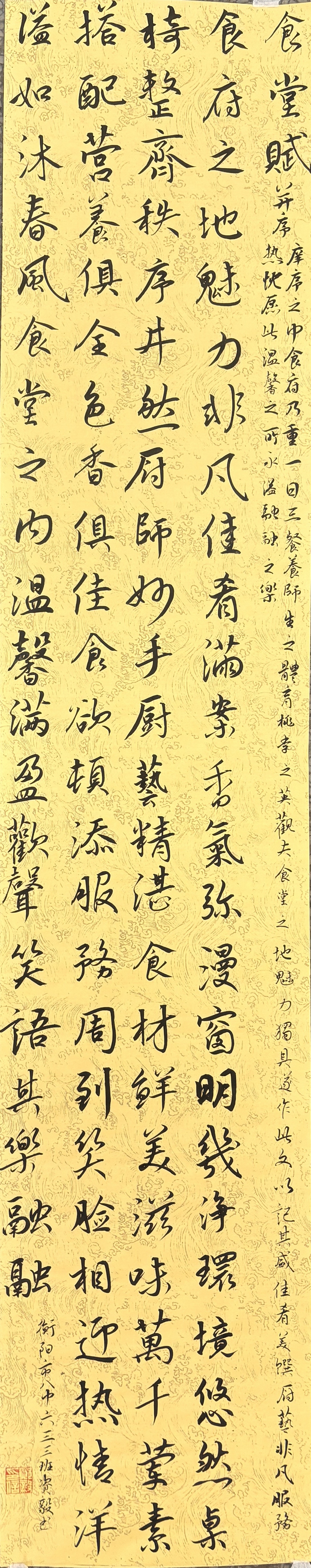 衡阳市八中一直以来都致力于校园文化建设与后勤服务的创新发展,此次“味美·艺韵——食堂文化建设书画作品征稿”活动的成功举办,不仅进一步丰富了校园文化生活,还促进了校园文化的多元发展,为师生们提供了一个展示艺术风采的广阔舞台。未来,我校将继续加强校园文化建设,为师生们创造更加美好的学习和生活环境。